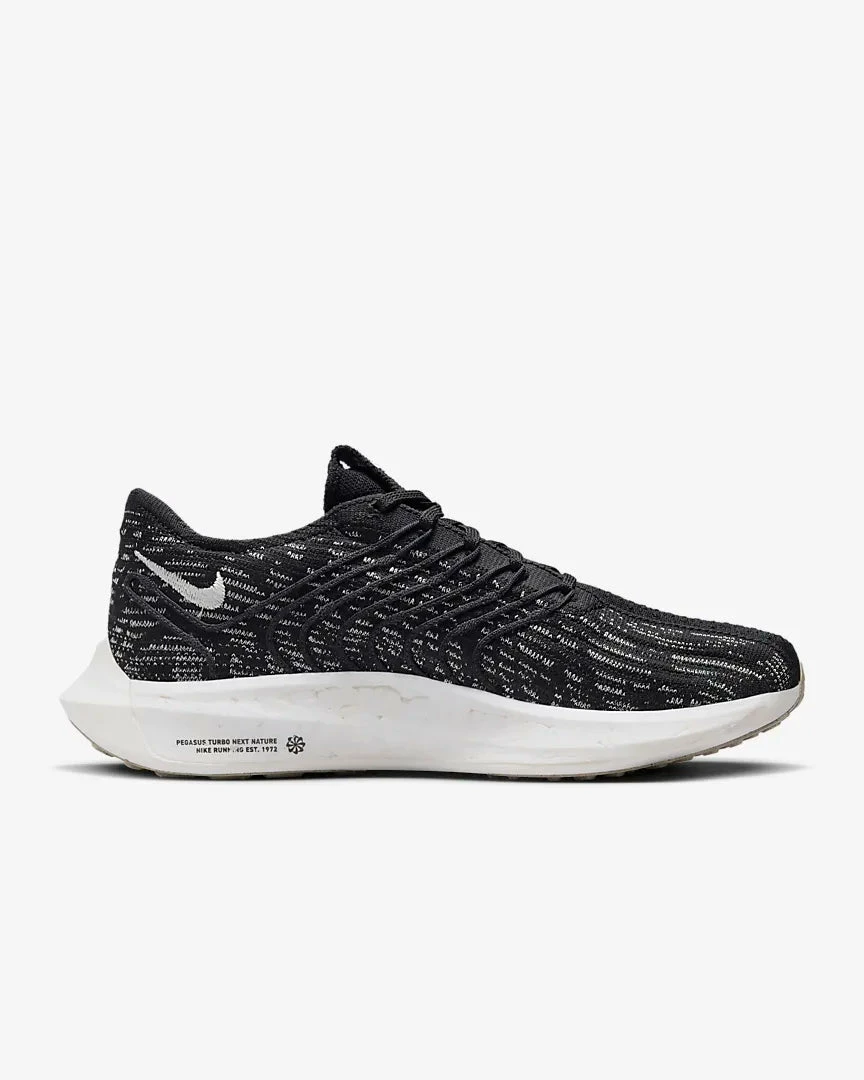 Let the Nike Pegasus Turbo Next Nature help you log the hard miles. Made with at least 50% recycled content by total weight of product, this esteemed stallion gives you a stretchy, just-right feel. Complete with lighter, responsive foam, it’s made to help you increase tempo without sacrificing comfort as you push toward a personal best.
